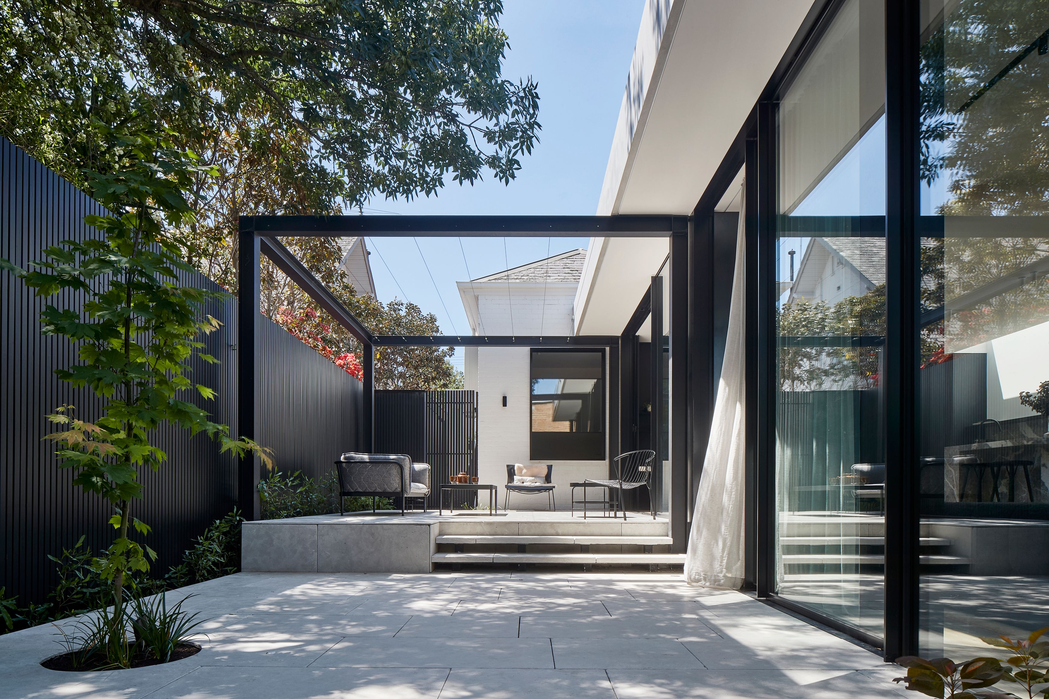 Privacy from neighbouring apartments was the catalyst for the expanse of pivoting timber screens that give this East St Kilda extension its distinctive personality. Opening the living spaces to the garden or shielding harsh afternoon sun, Hidden House’s full-height screens are a standalone feature and give the residents control over the nature of their home at any moment.